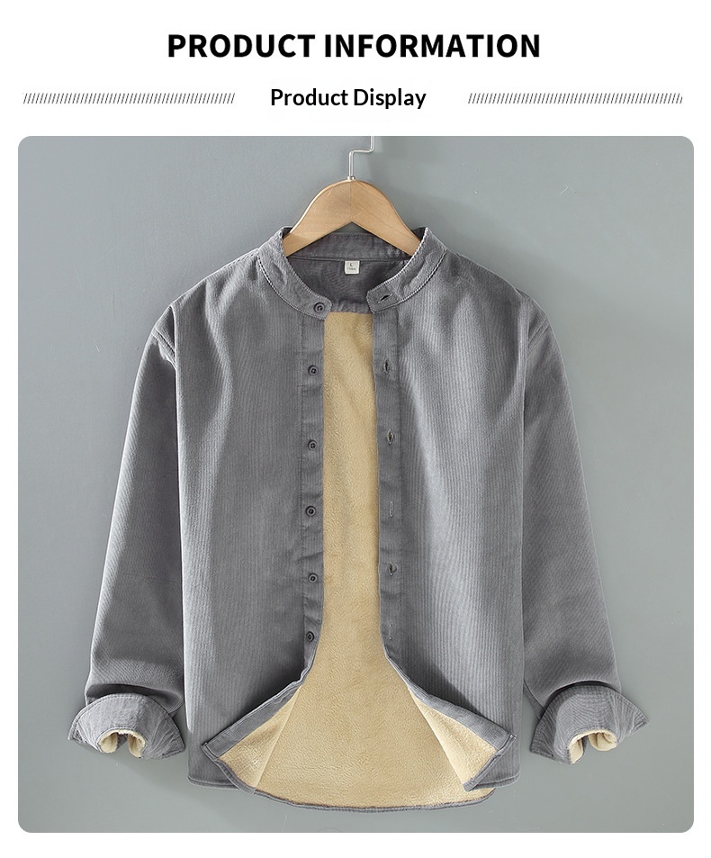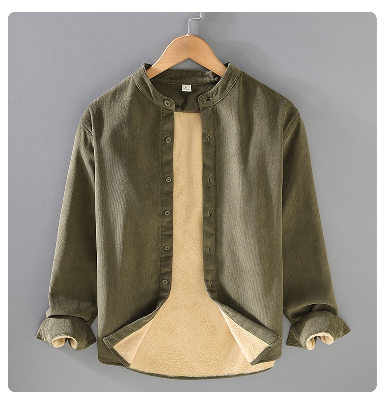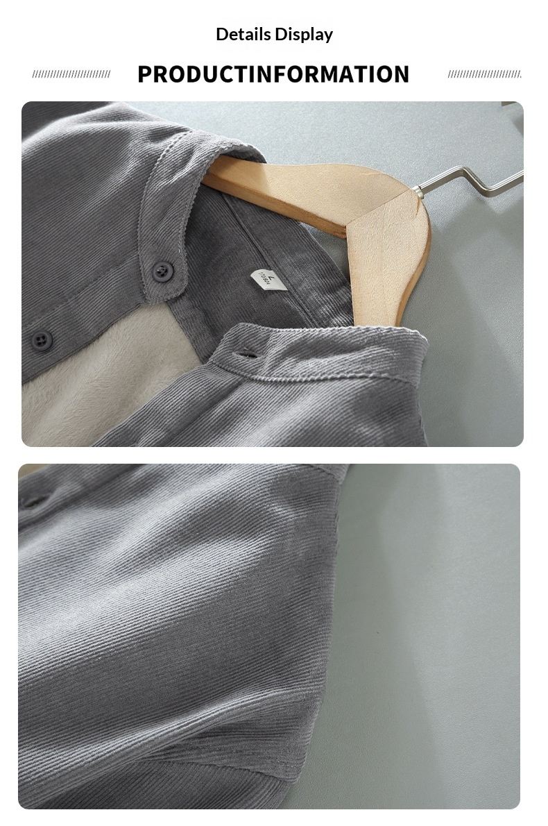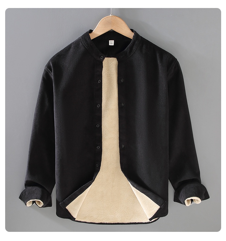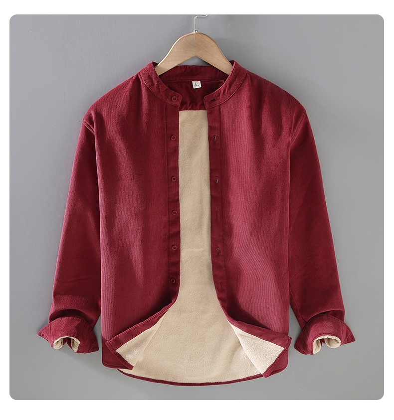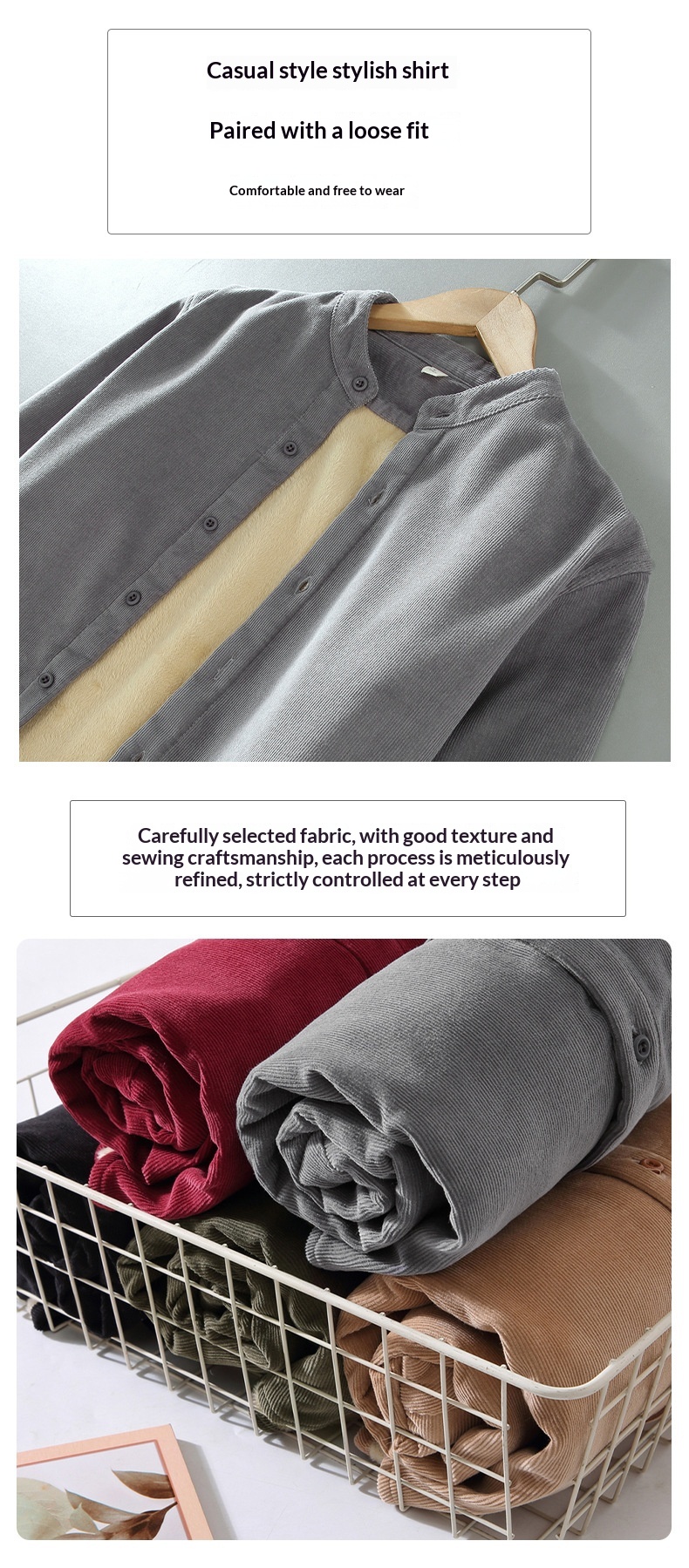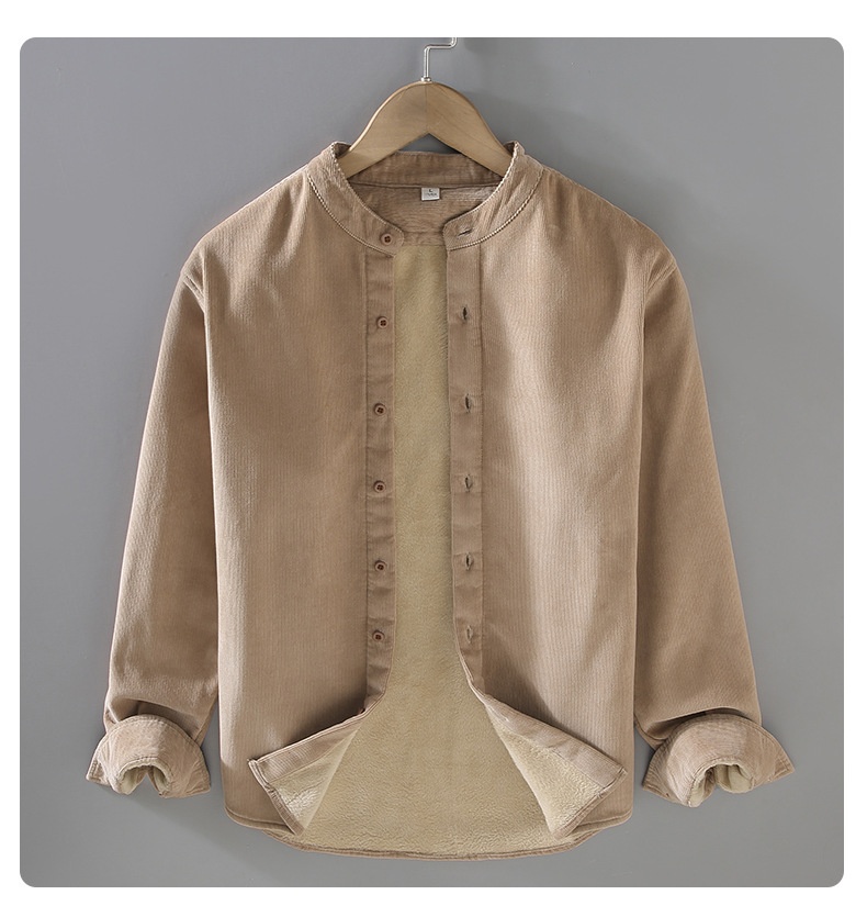 Flannel-lined Thick Warm Corduroy Small Stand-collar Shirt Jacket