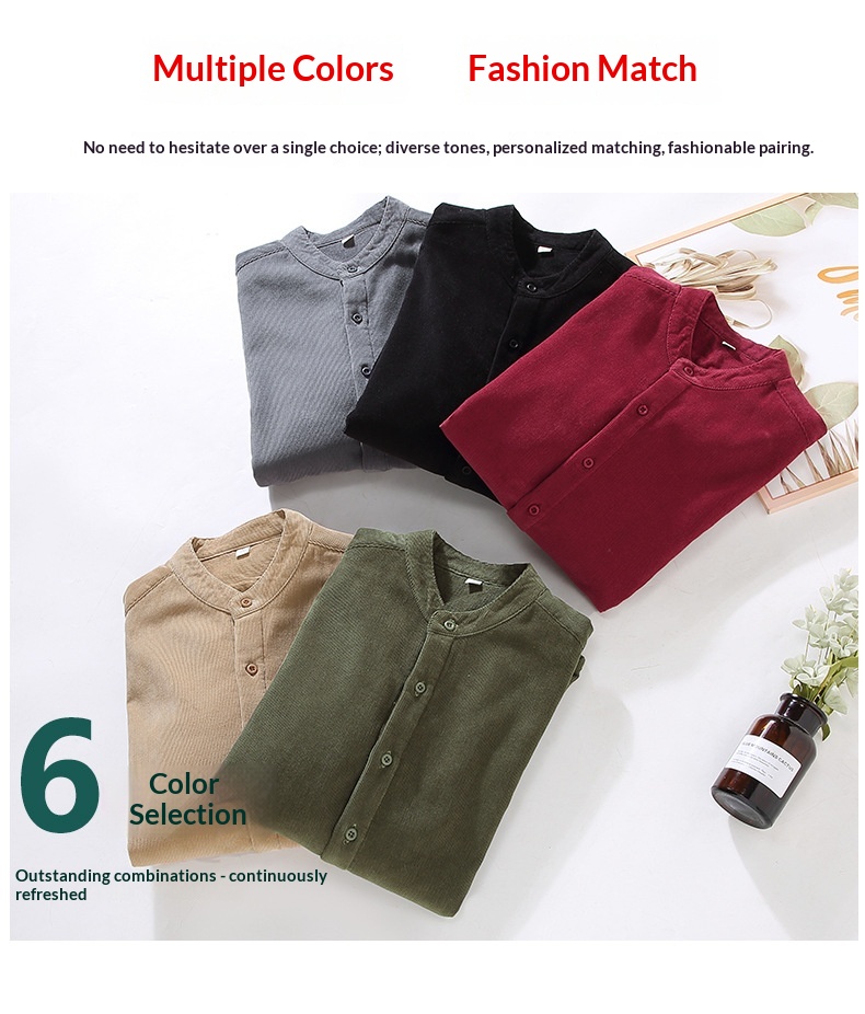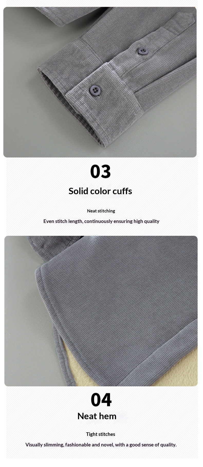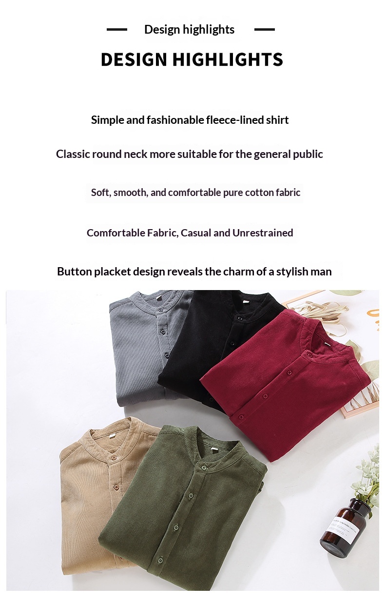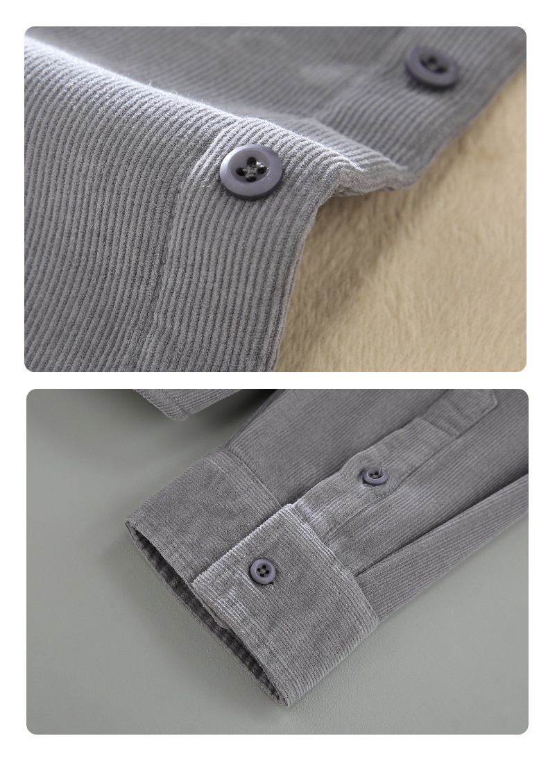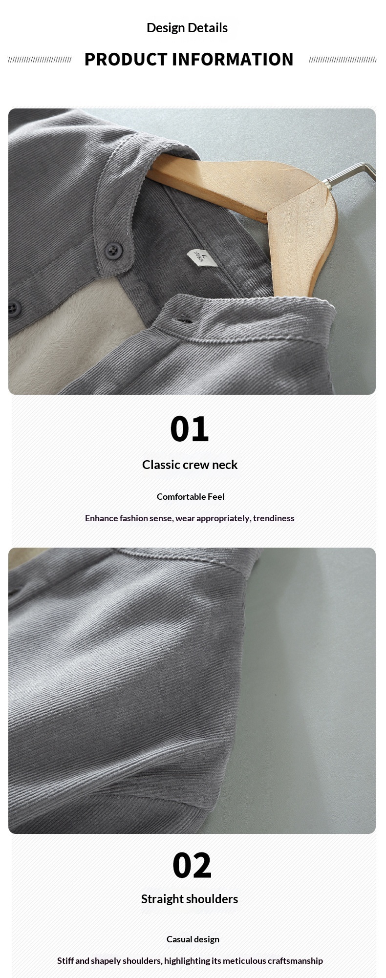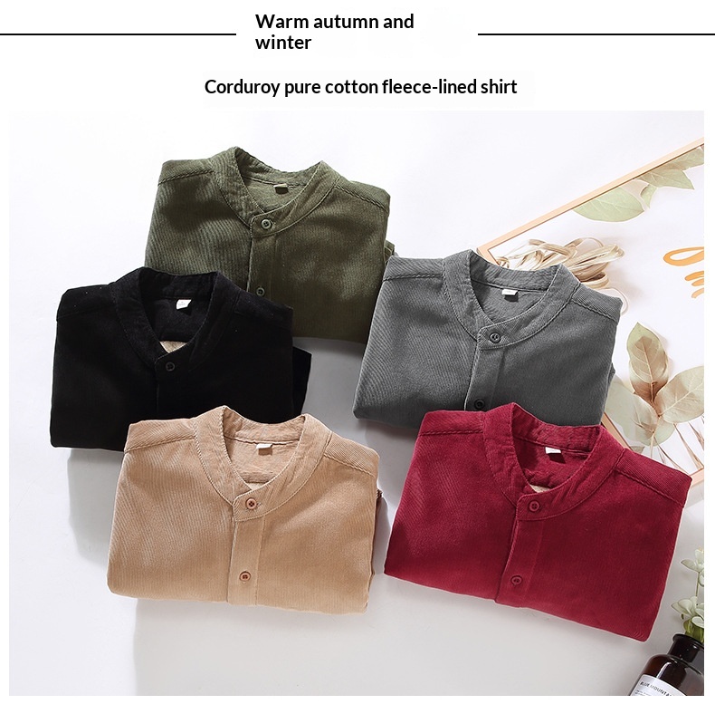Flannel-lined Thick Warm Corduroy Small Stand-collar Shirt Jacket